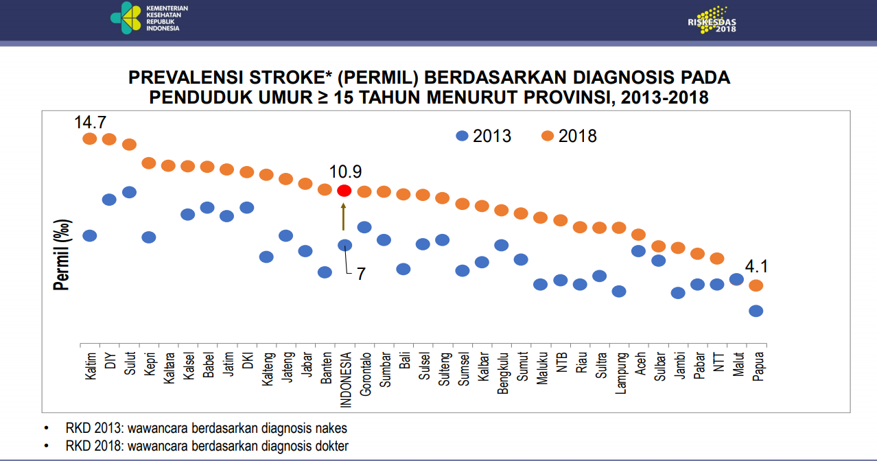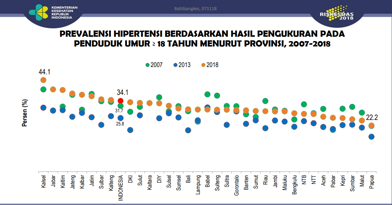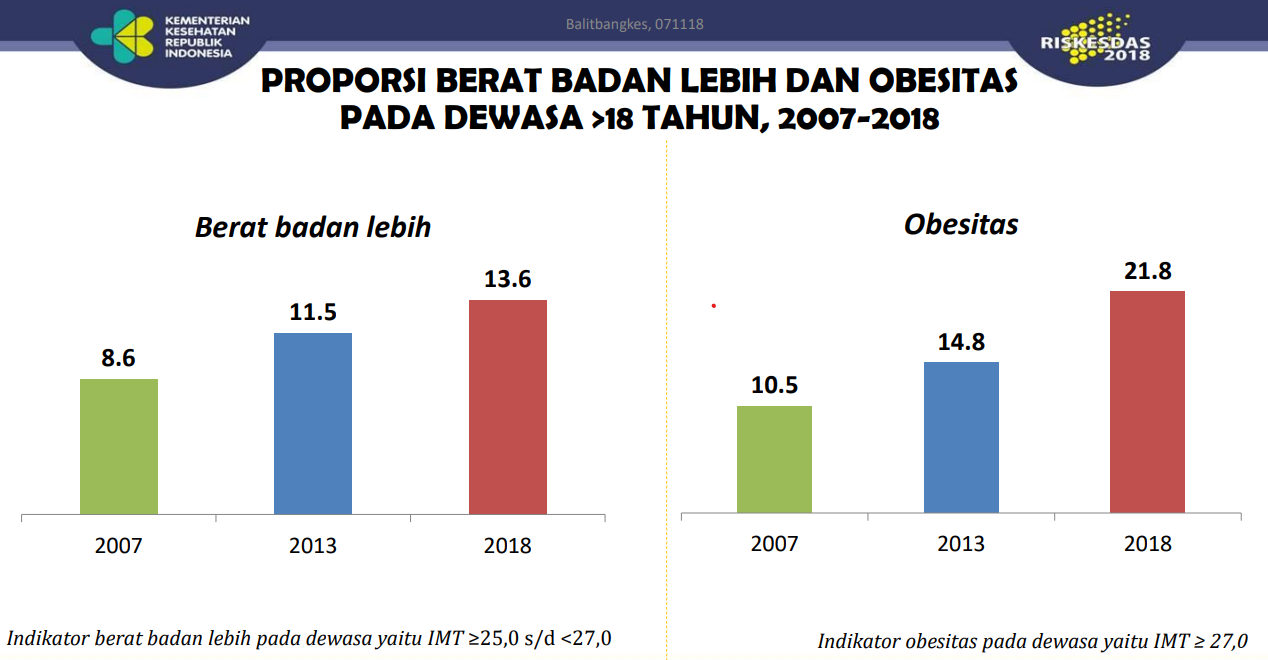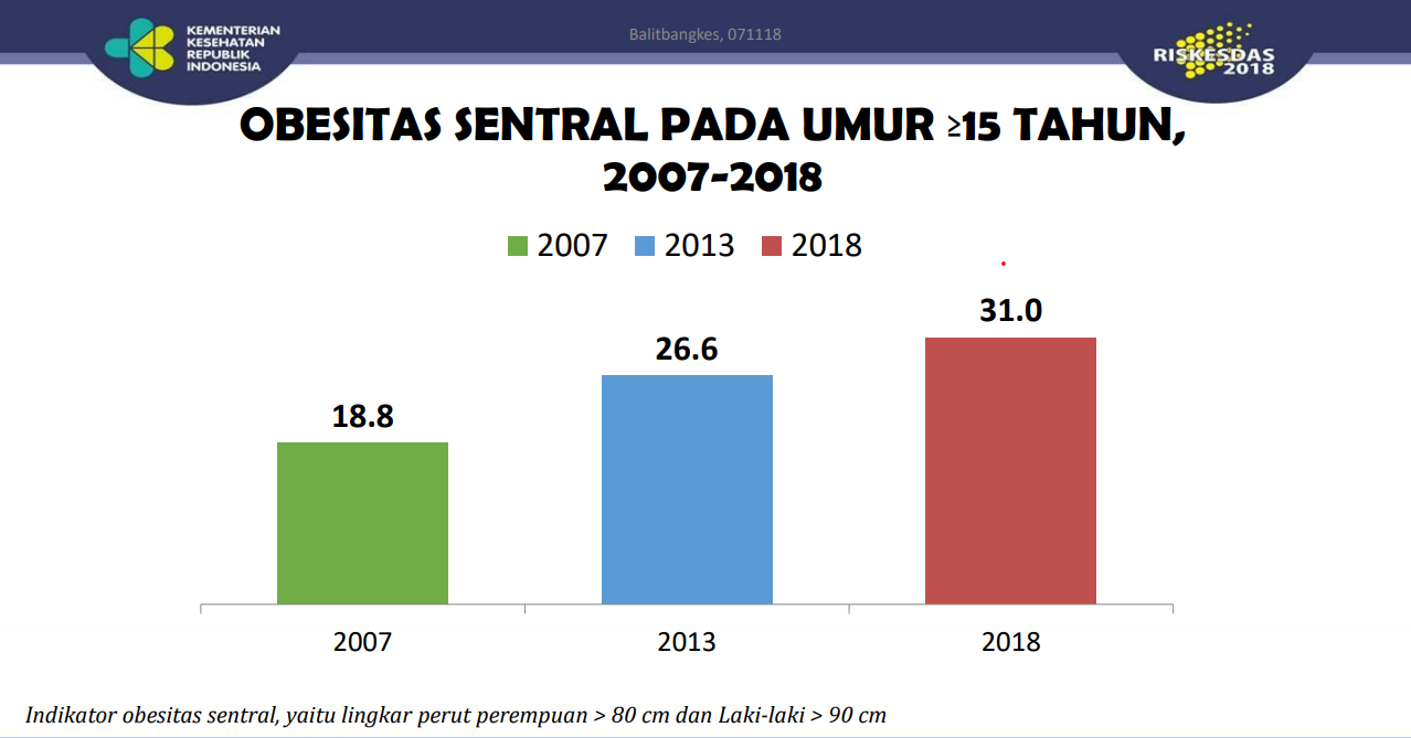 Bila kita lihat hasil riskesdas (riset kesehatan dasar) 2018 terjadi penurunan penyakit menular; hal ini dapat menunjukan tingkat hygiene dan penatalaksanaan penyakit infeksius Indonesia membaik namun disatu sisi prevalensi penyakit tidak menular seperti hipertensi, diabetes, kanker, jantung, stroke, gangguan mental dan emosional, berat badan berlebih serta obesitas mengalami peningkatan bila dibandingkan tahun 2013.